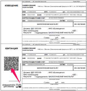 Оплату обучения рекомендуем проводить через СБЕРБАНКНа каждой квитанции есть двумерный QR-код. Его можно использовать при оплате в терминалах самообслуживания и при оплате через мобильное приложение банка. Считайте QR-код сканером, введите необходимые данные и совершите платеж. При оплате через другие банки проверяйте правильное считывание QR-кода.